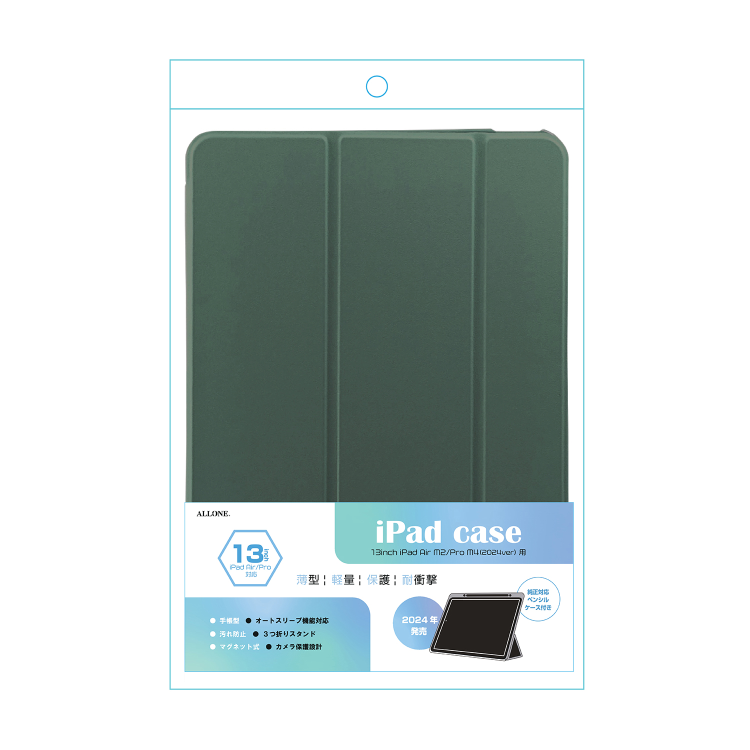iPadAir/Pro13インチ(M2/M3/M4)用手帳ケース カーキグリーン