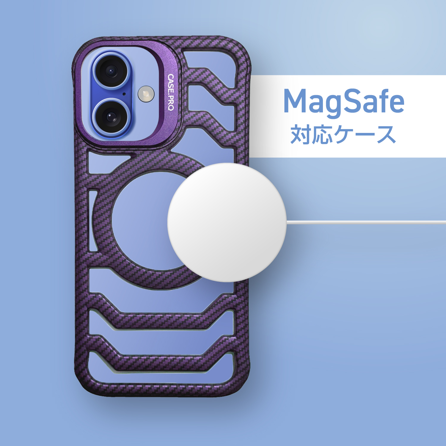 【マグセーフ対応】内蔵金属フレームによりケースを付けたままでもワイヤレス充電器などのマグネットに貼りつき充電を行う事が可能です。また、マグセーフ対応のスマホグリップにも使用できます。