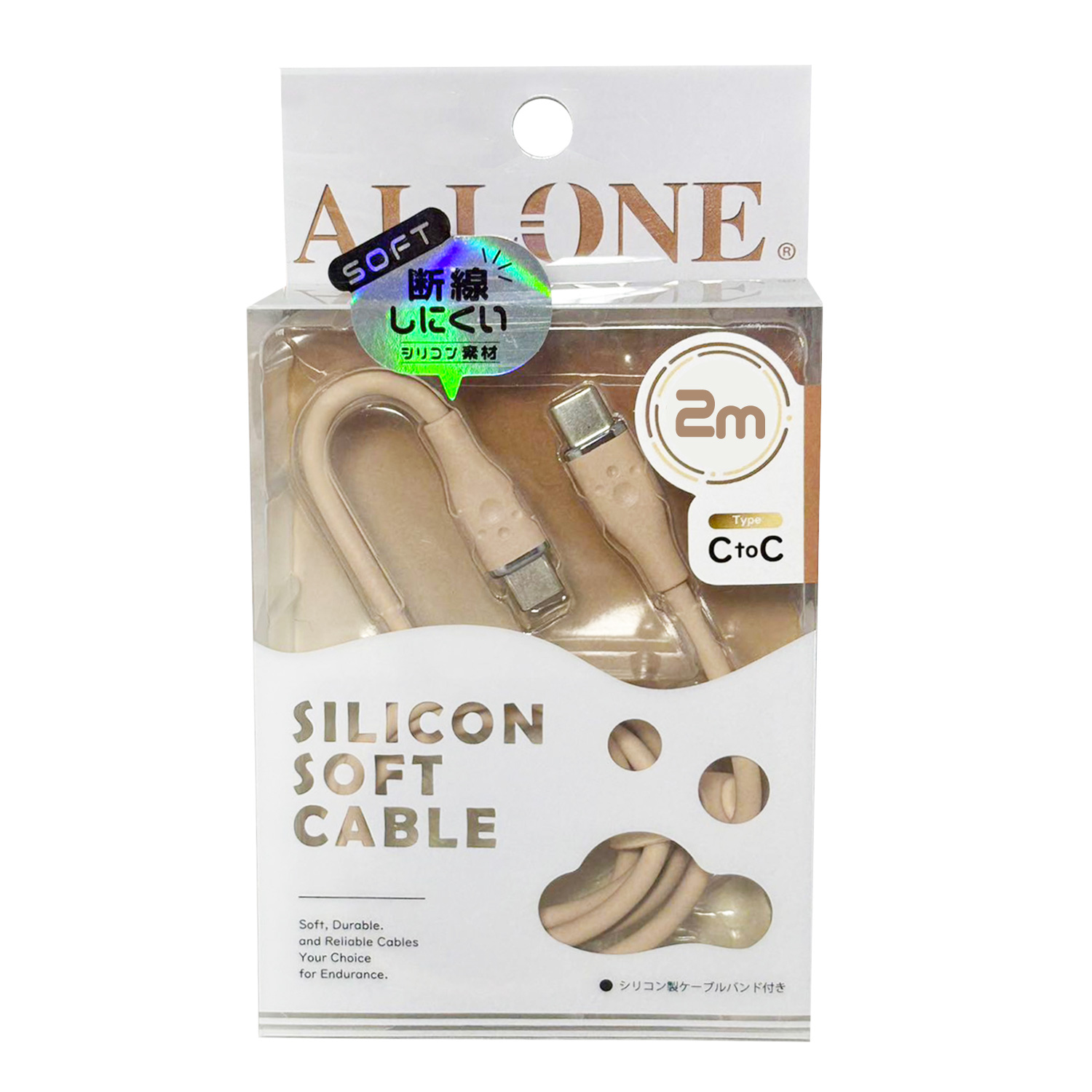 60W対応シリコンケーブルTypeCtoC2m キャメル