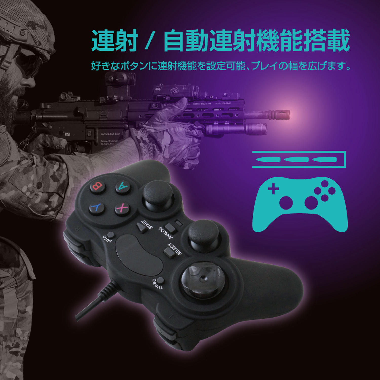 【連射・自動連射機能】強力な連射機能と自動連射機能が搭載されており、ゲームプレイ中に素早く反応することができます。