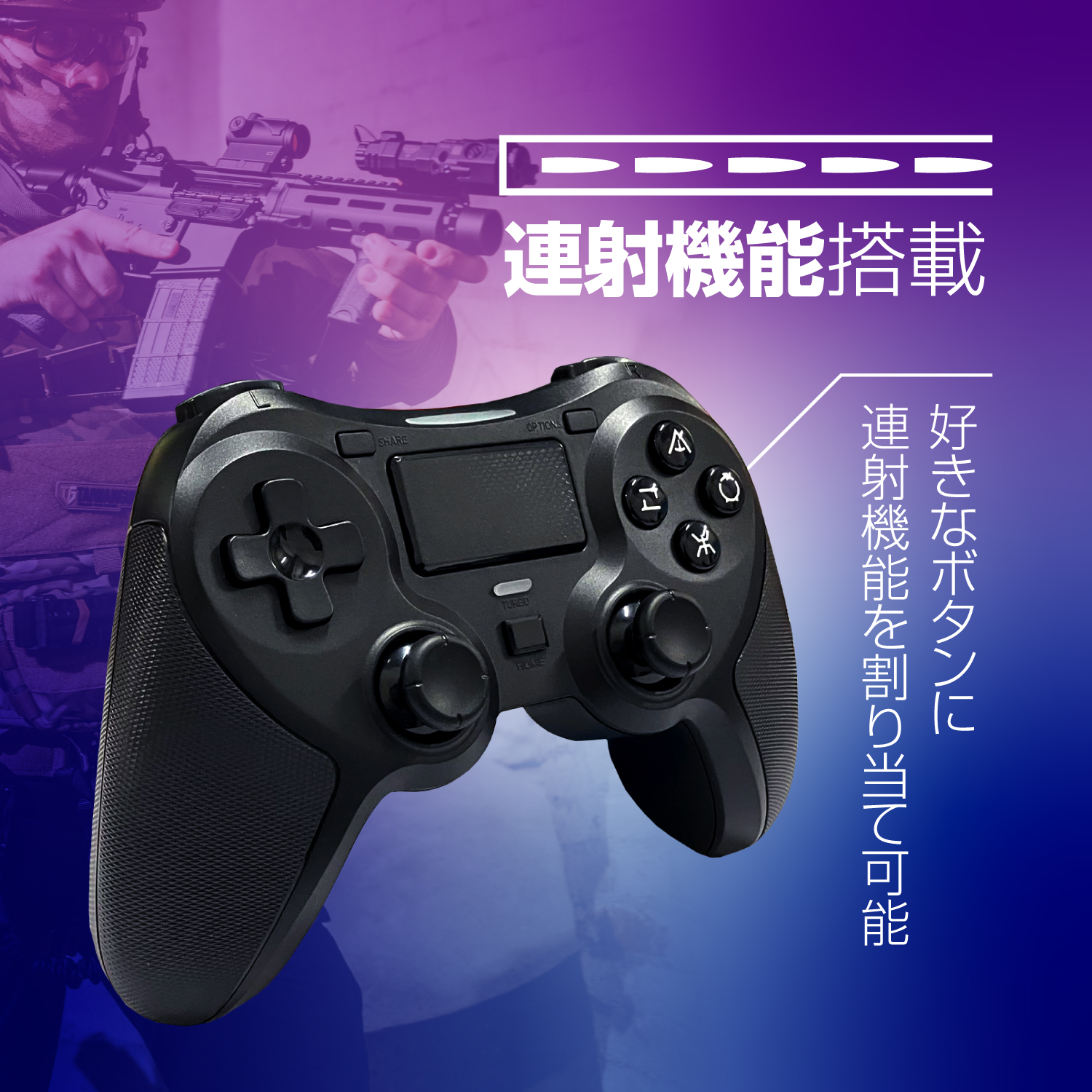 【連射機能搭載】お好きなボタンに連射機能を割り当て可能、プレイの幅を広げます。また、約8時間使用可能なバッテリーを装備しており長時間ゲームをしたい方にも最適です。