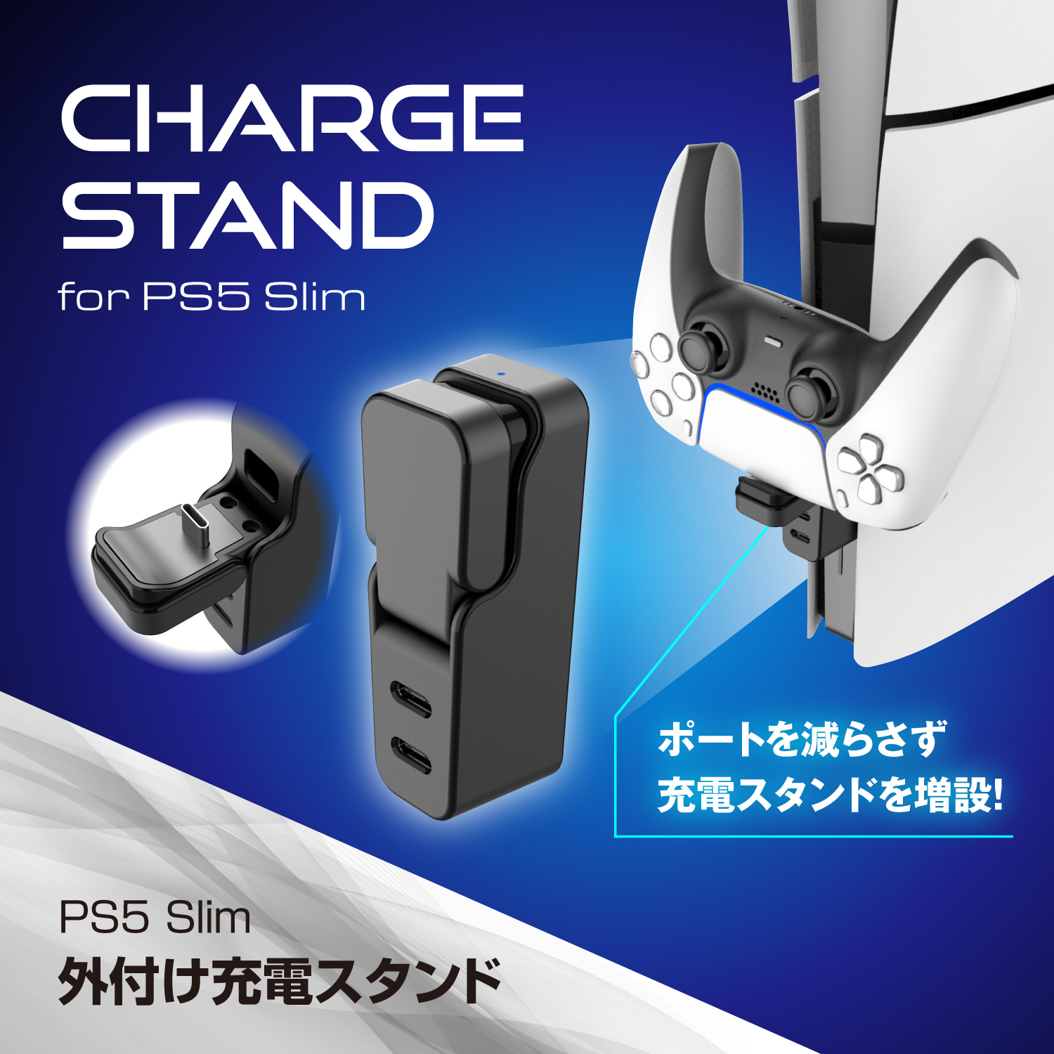 PS5Slim用外付け充電スタンド ブラック