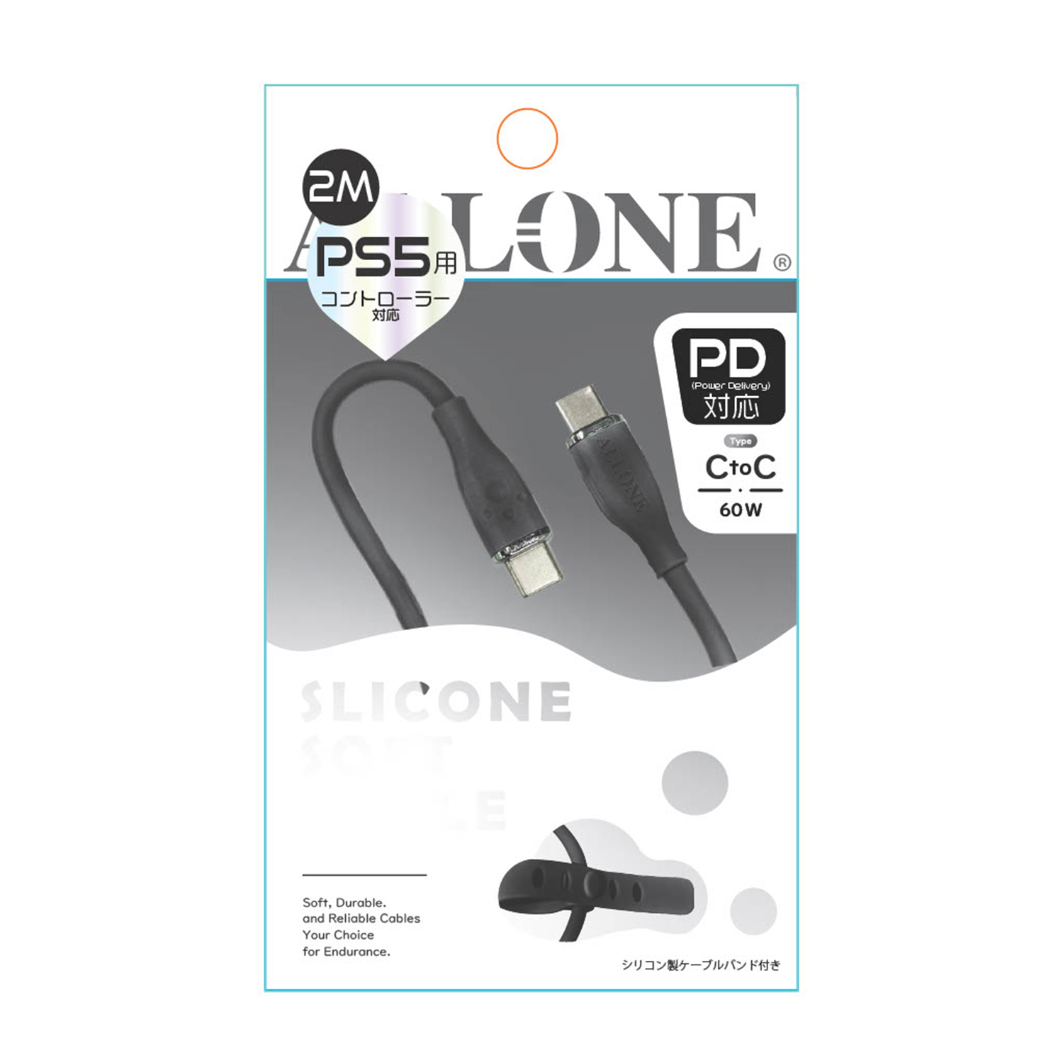 PS5用60W対応シリコンケーブルTypeCtoC2m ブラック