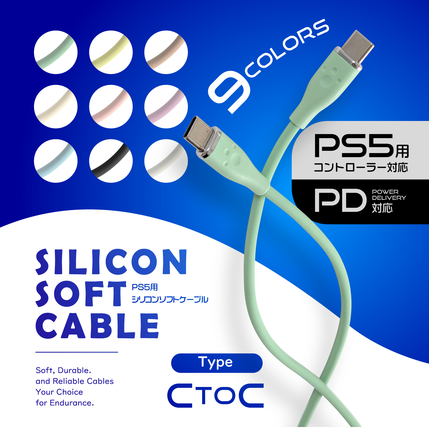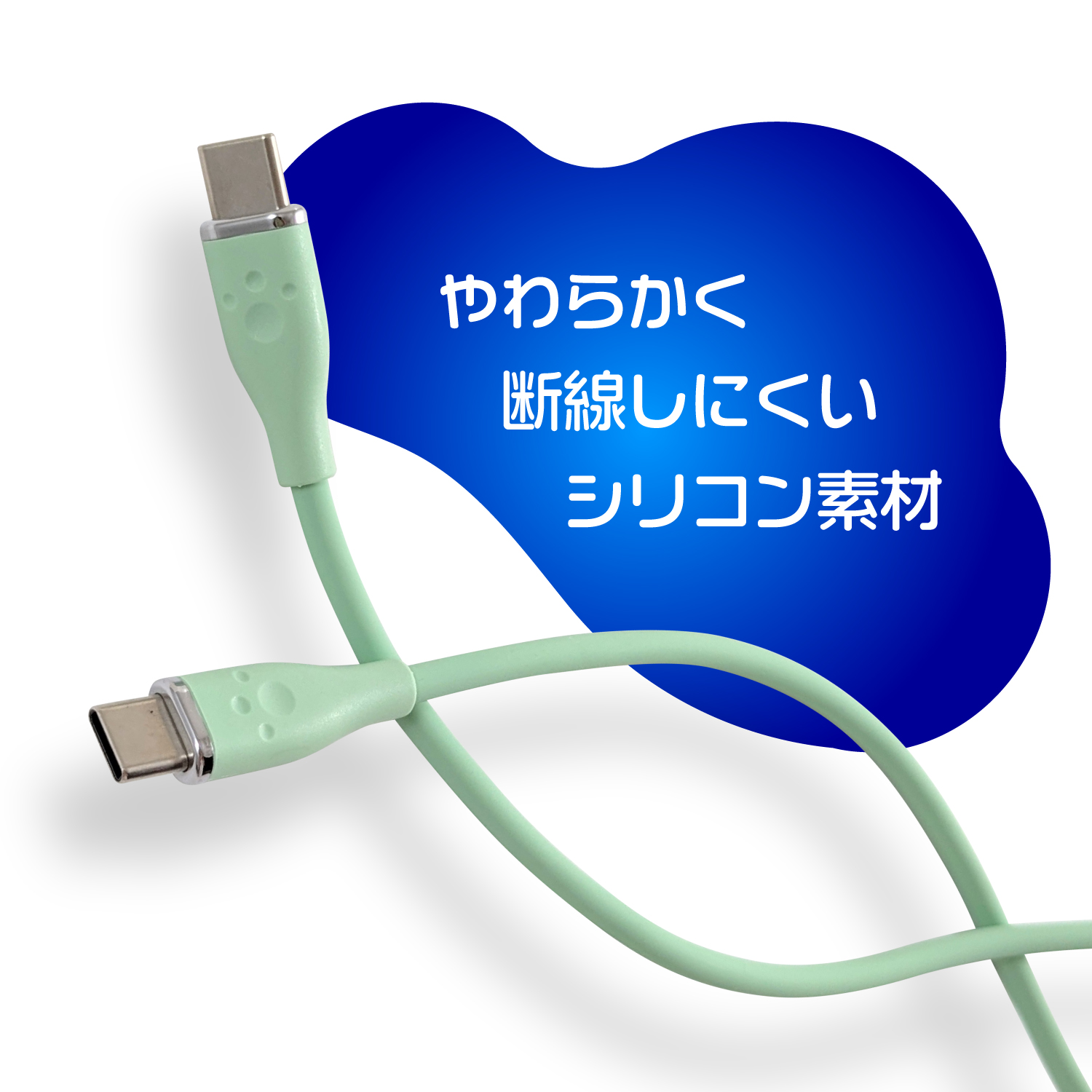 PS5用60W対応シリコンケーブルTypeCtoC2m ミント