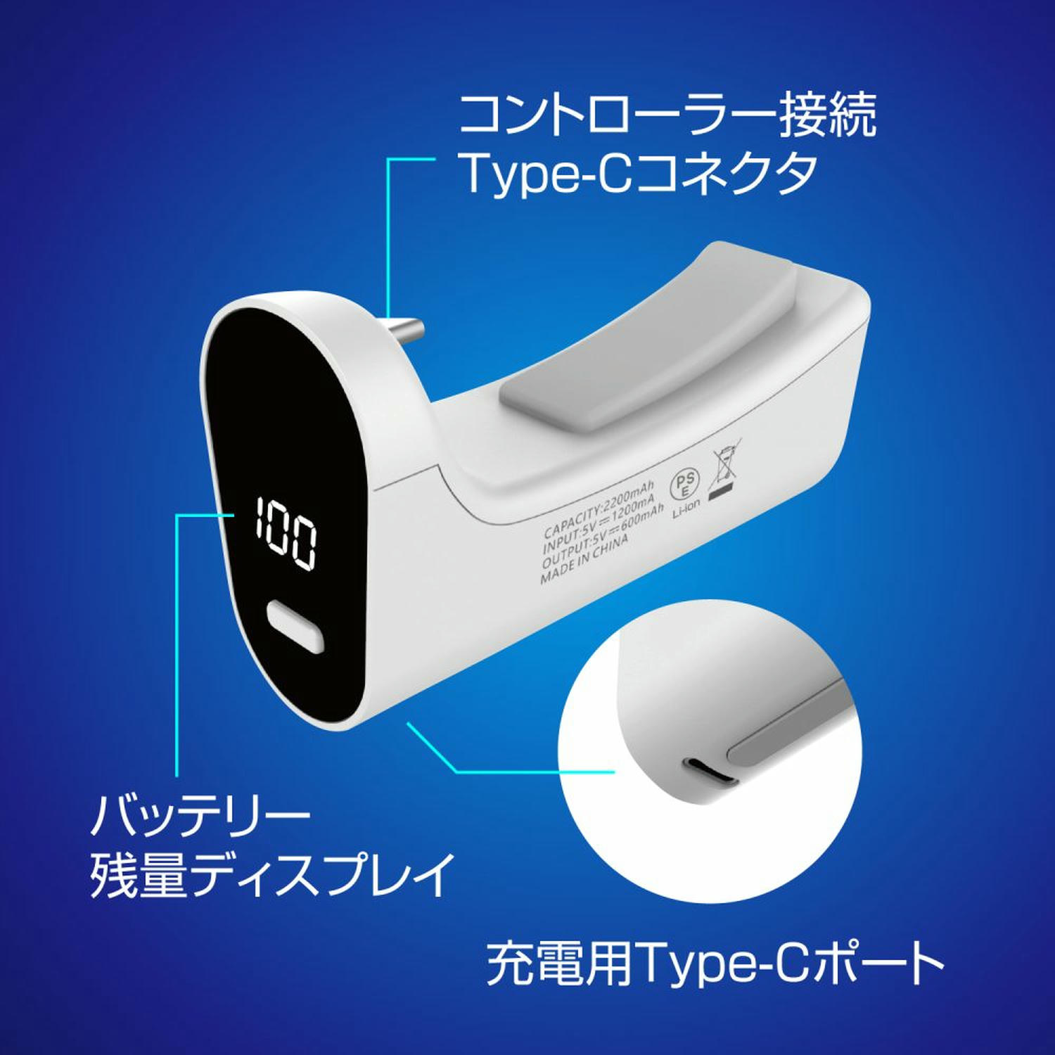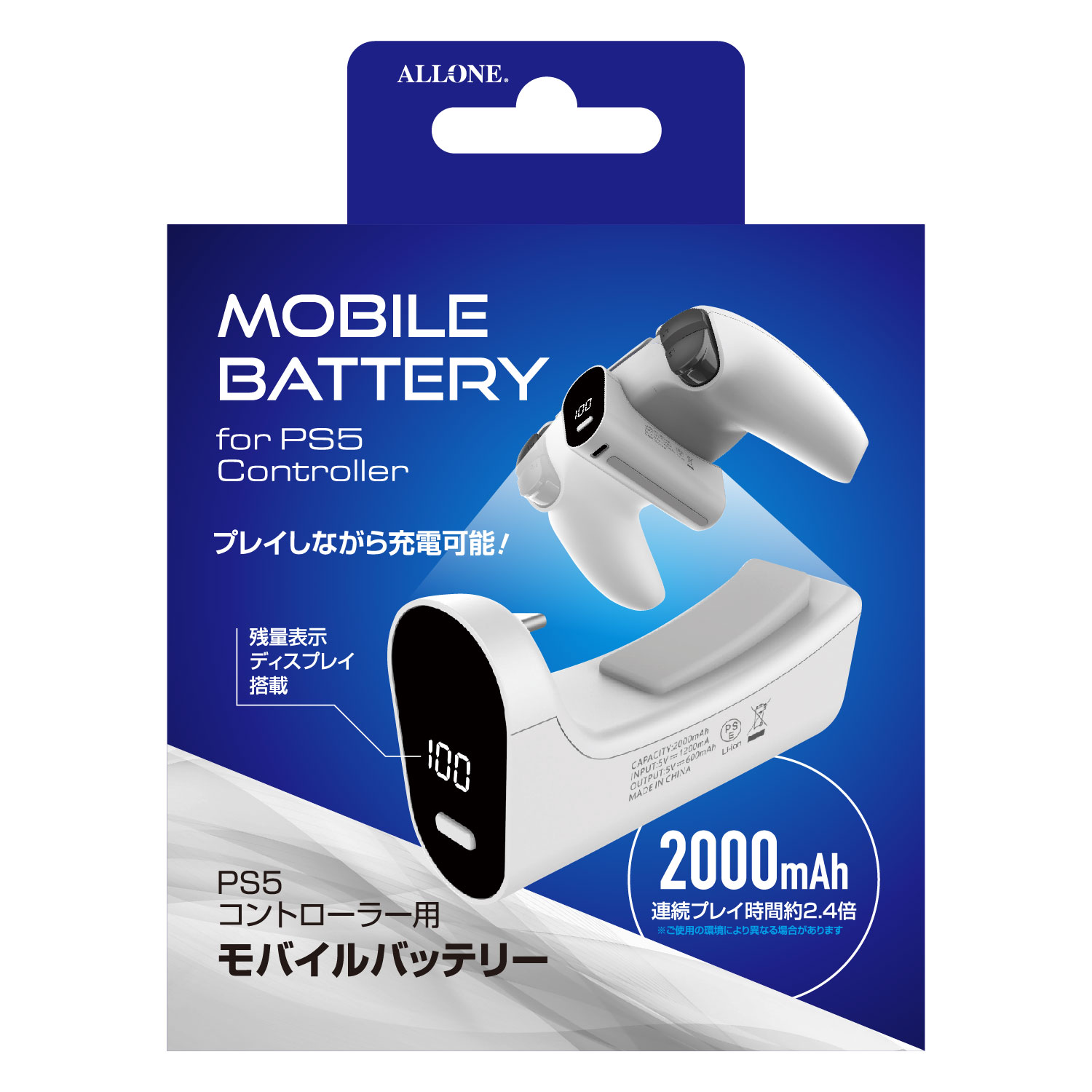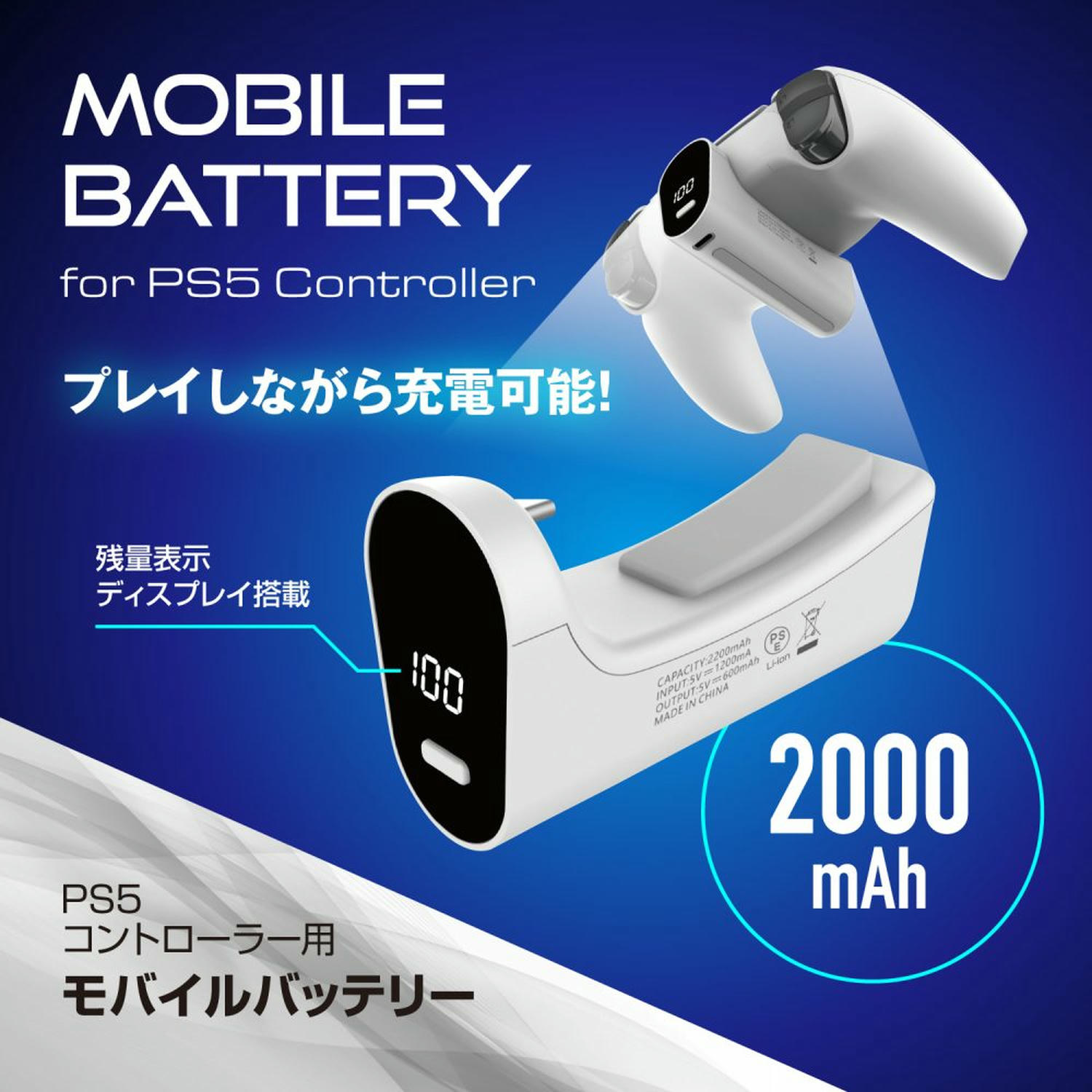PS5用コントローラー対応モバイルバッテリー ホワイト