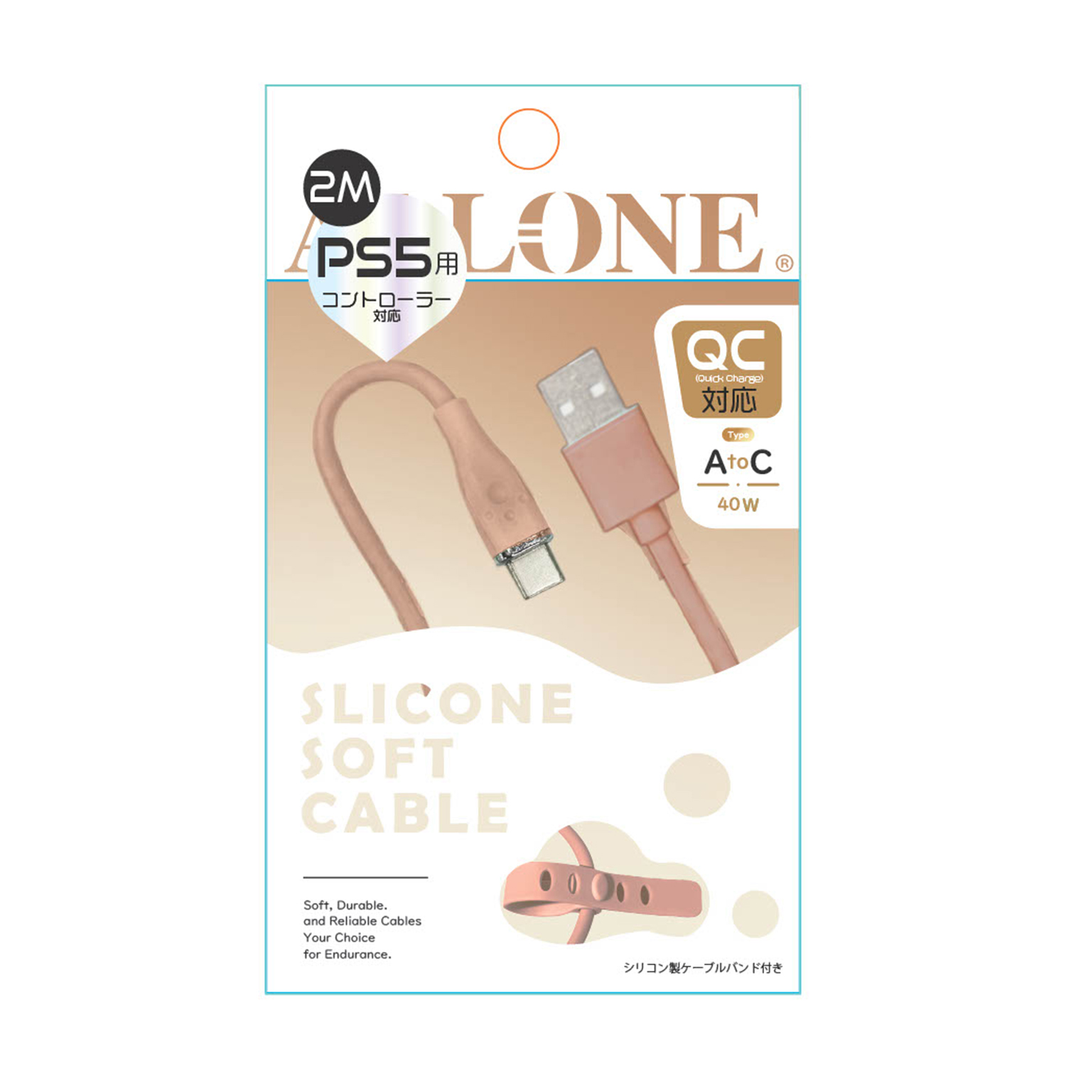 PS5用シリコンケーブルTypeAtoC2m キャメル