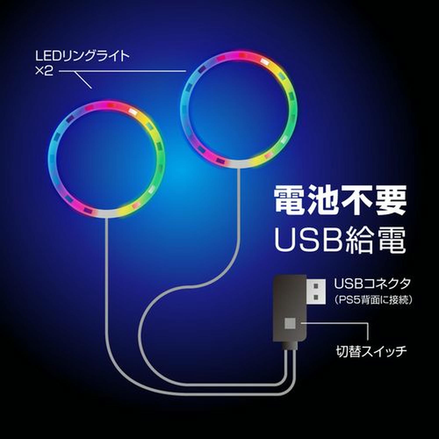 【シンプルに楽しむ】本製品は、シンプルなボタン操作だけで簡単に使えます。複雑なリモコンを使用する心配もなく、切替えスイッチのみで発光パターンを変えて楽しむことができます。また、PS5のUSBポートから給電するバスパワータイプですので、別途コンセントなどは必要ありません。こちらのLEDライトは、PS5両エディションに対応しております。
