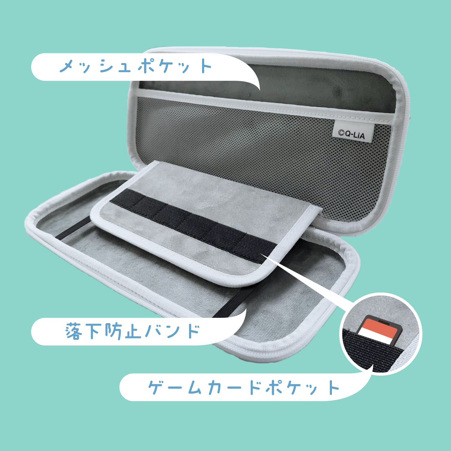 【軽量&コンパクト】軽くて丈夫なEVA素材を使用。薄型でコンパクトなのでバッグにも入れやすく、ゲーム機本体を固定するバンドも付いているため持ち運びにも安心です。