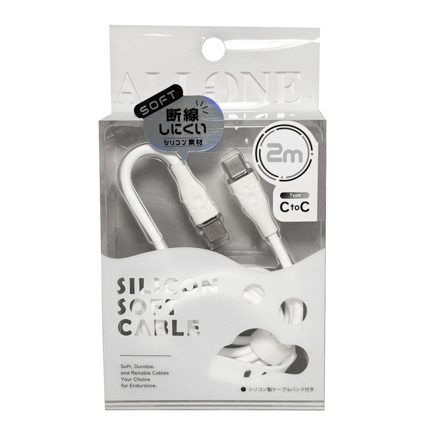 60W対応シリコンケーブルTypeCtoC2m ホワイト