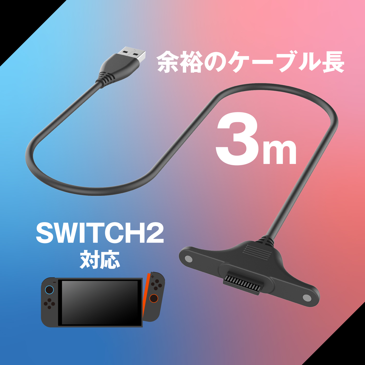 Switch2対応!長いケーブルで充電しながら遊べる便利アイテムです。