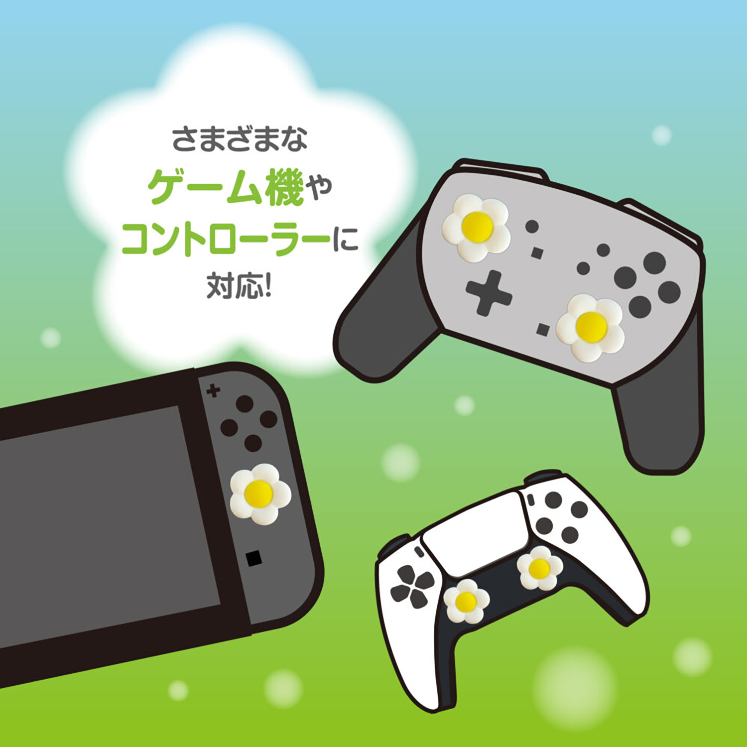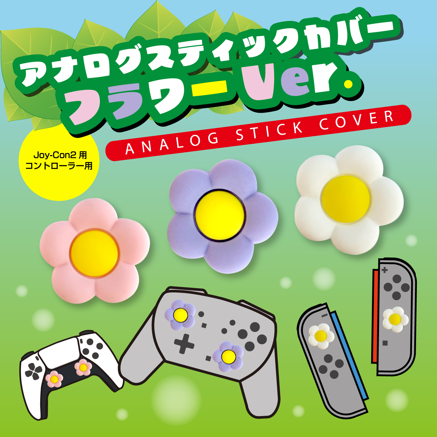 Switch2のJoy-Con&Proコン対応の、かわいいお花型アナログスティックカバーです。簡単装着でオリジナルなゲーム機に変身させちゃおう!