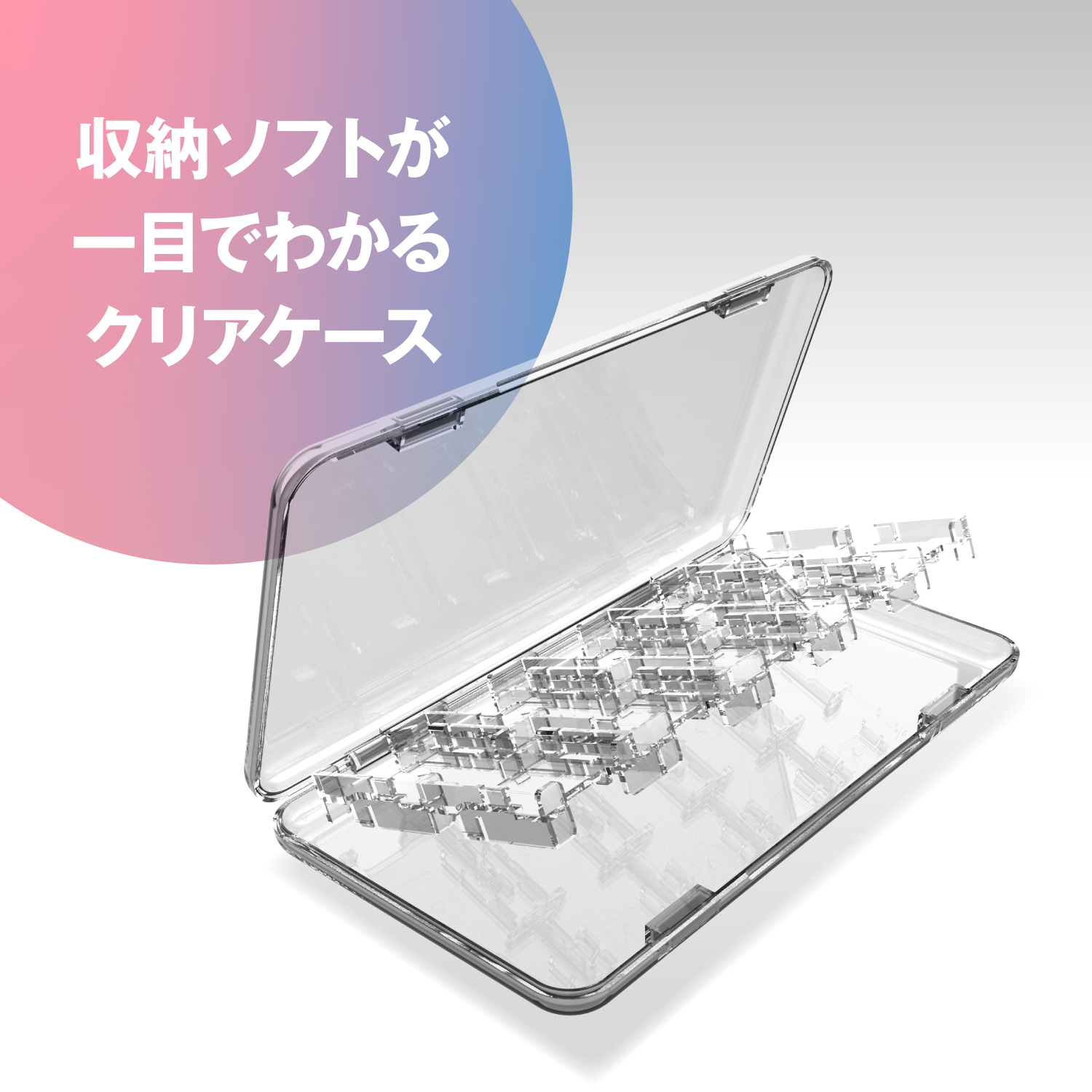 Switch2のソフトはもちろん、SwitchのソフトやmicroSDも収納できるカードケースです。透明なので一目で中身の確認がしやすく、コンパクトで持ち運びにとっても便利!
