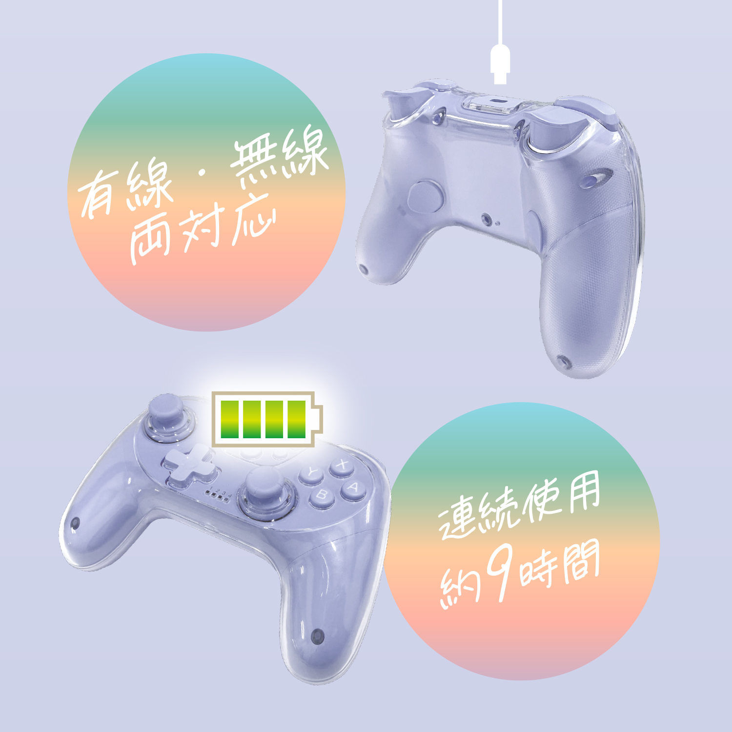 本体のくすみカラーとクリアネス構造がおしゃれ!かわいいだけじゃなく機能面も充実の本格派コントローラーです。