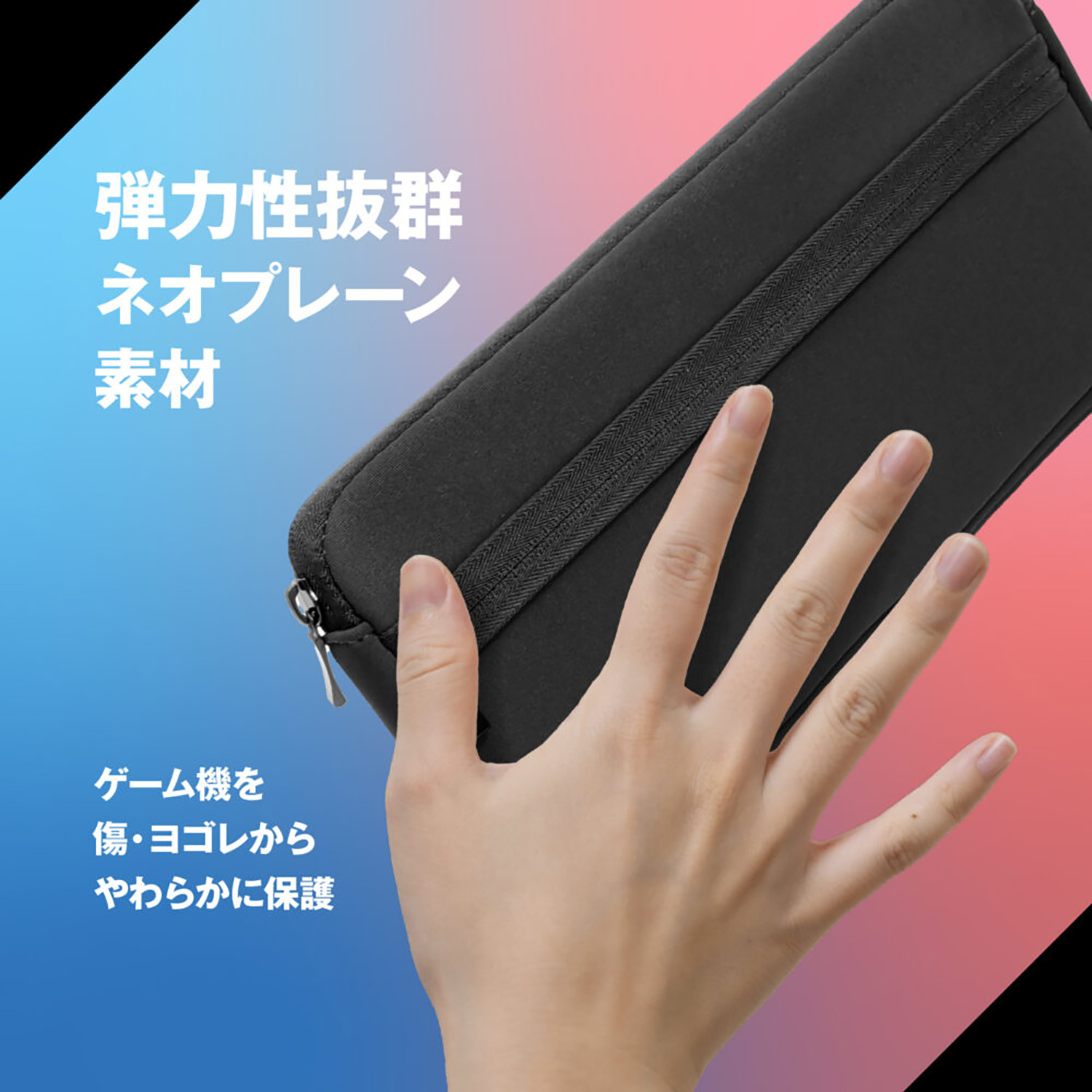 【キズや汚れの防止に】しなやかで手触りが良いネオプレーン素材を使用しており、ゲーム機本体をキズや汚れから優しくガードします。