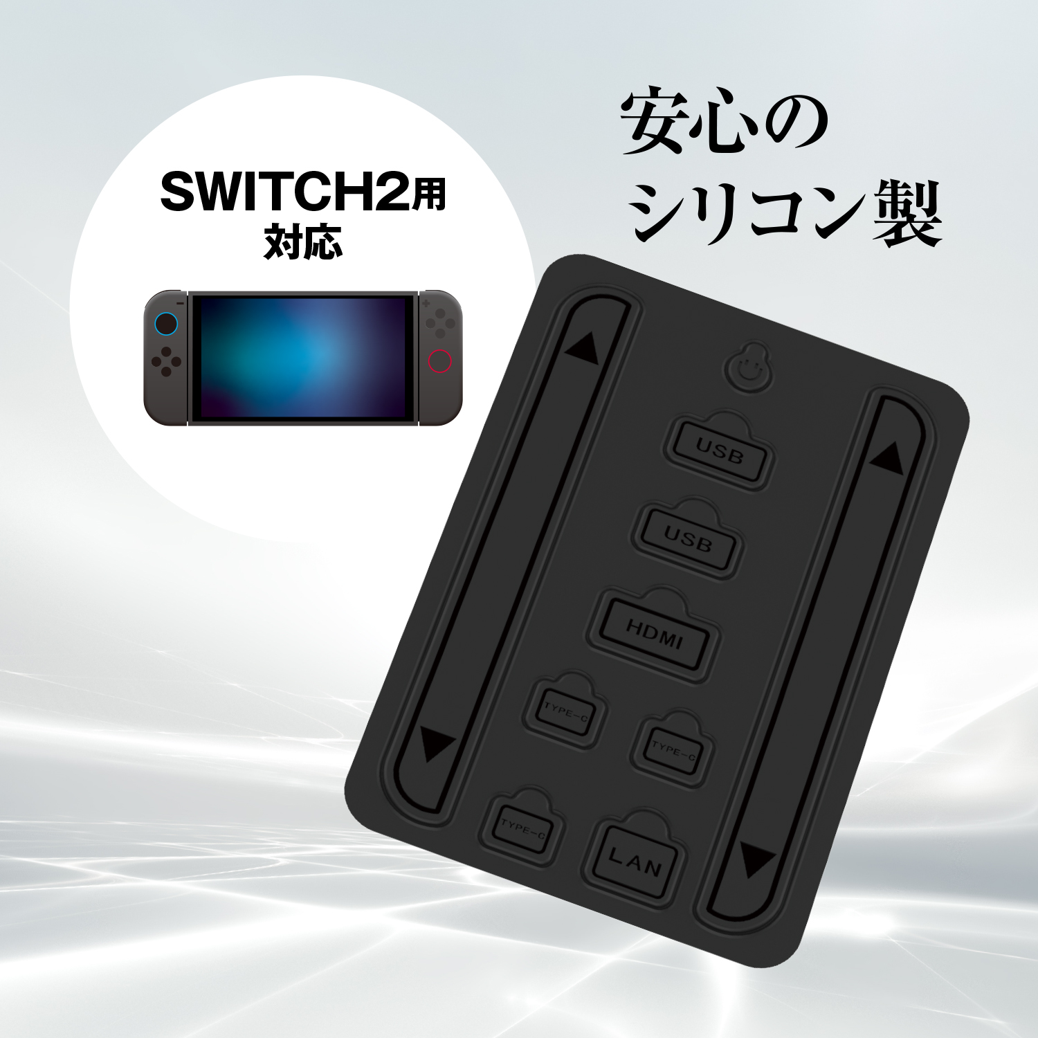 細かなゴミや湿気がドック内に侵入するのを防いでくれる、Switch2対応のホコリ防止キャップです。安心のシリコン製、付け外しも簡単です!
