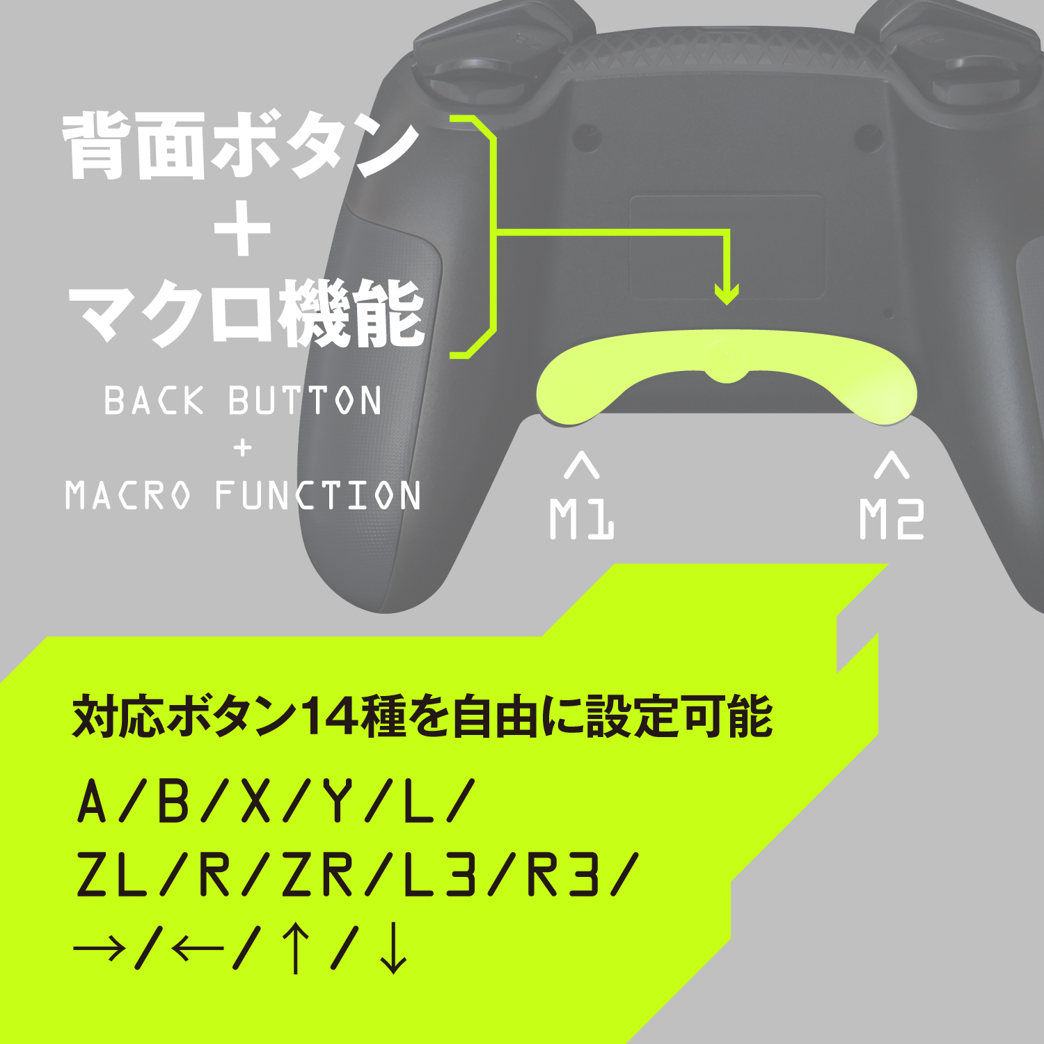 【コンパクトながら充実の仕様】ゲームの迫力をUPする連射機能、ジャイロ機能に加え、ボタンプログラミングが可能なマクロ機能、加速度センサーを搭載。プレイの臨場感を高めます。