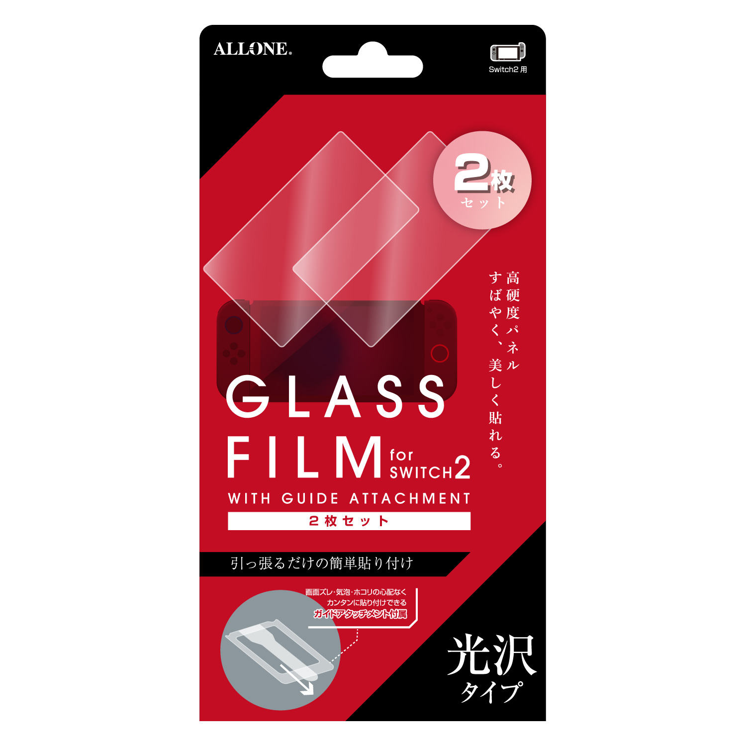 Switch2対応!美しい光沢タイプの液晶保護ガラスフィルムです。お得な2枚セット!ガイドアタッチメント付きなので細かい作業が苦手な方でも安心です。