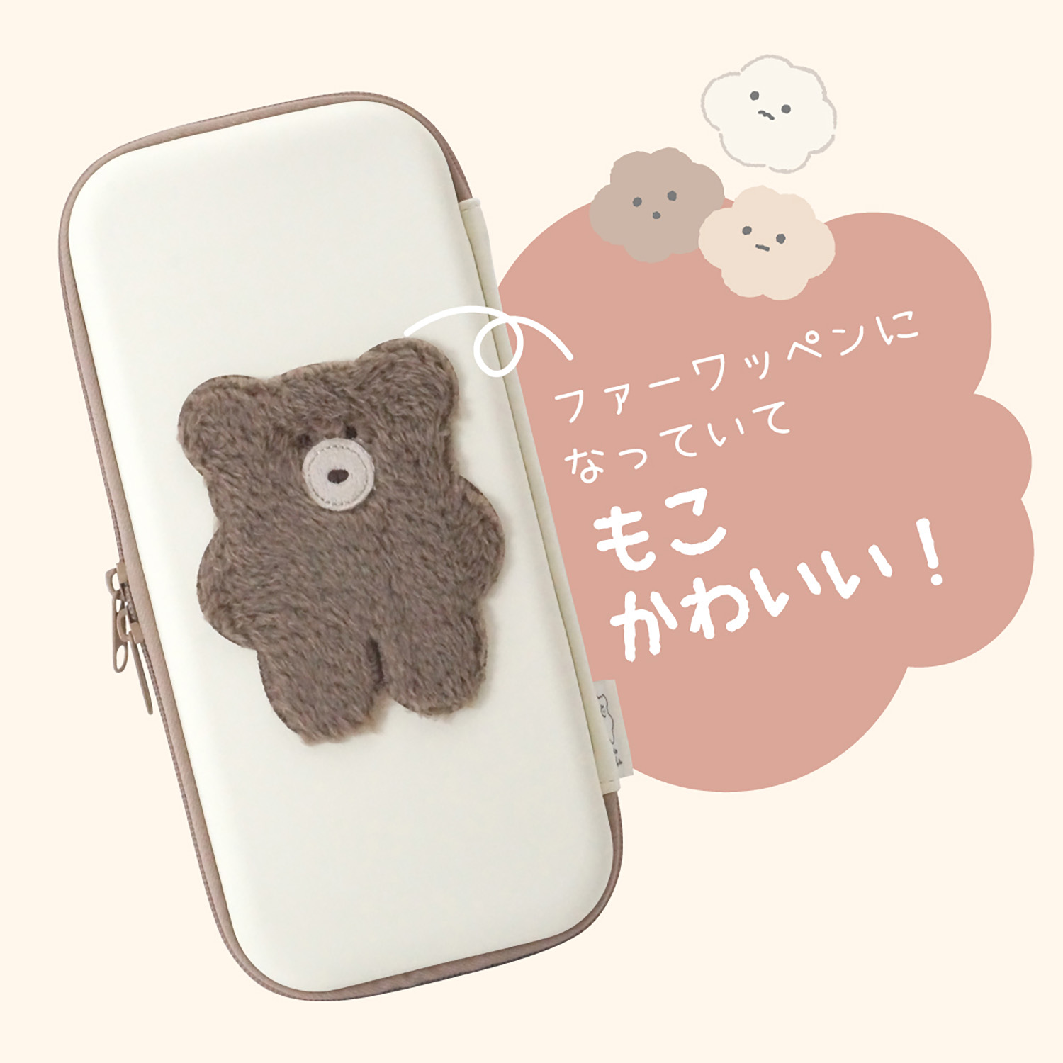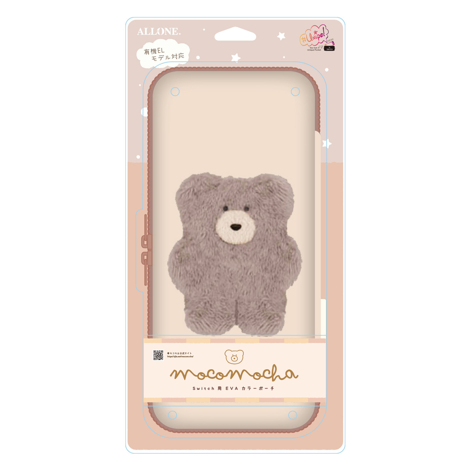 【モコモカのSwitch用ポーチ】ファンシー商品を手掛けている「Q-LiA」と、POPなカラーでかわいいポーチの「ユニポ」がコラボ!くまのようなふしぎな生き物モコモカから有機EL対応Switch用EVAポーチが登場です♪ふわふわワッペンがついたポーチで癒されよう!内側には、柔らかく手触りの良いふわふわ素材を使用しております。