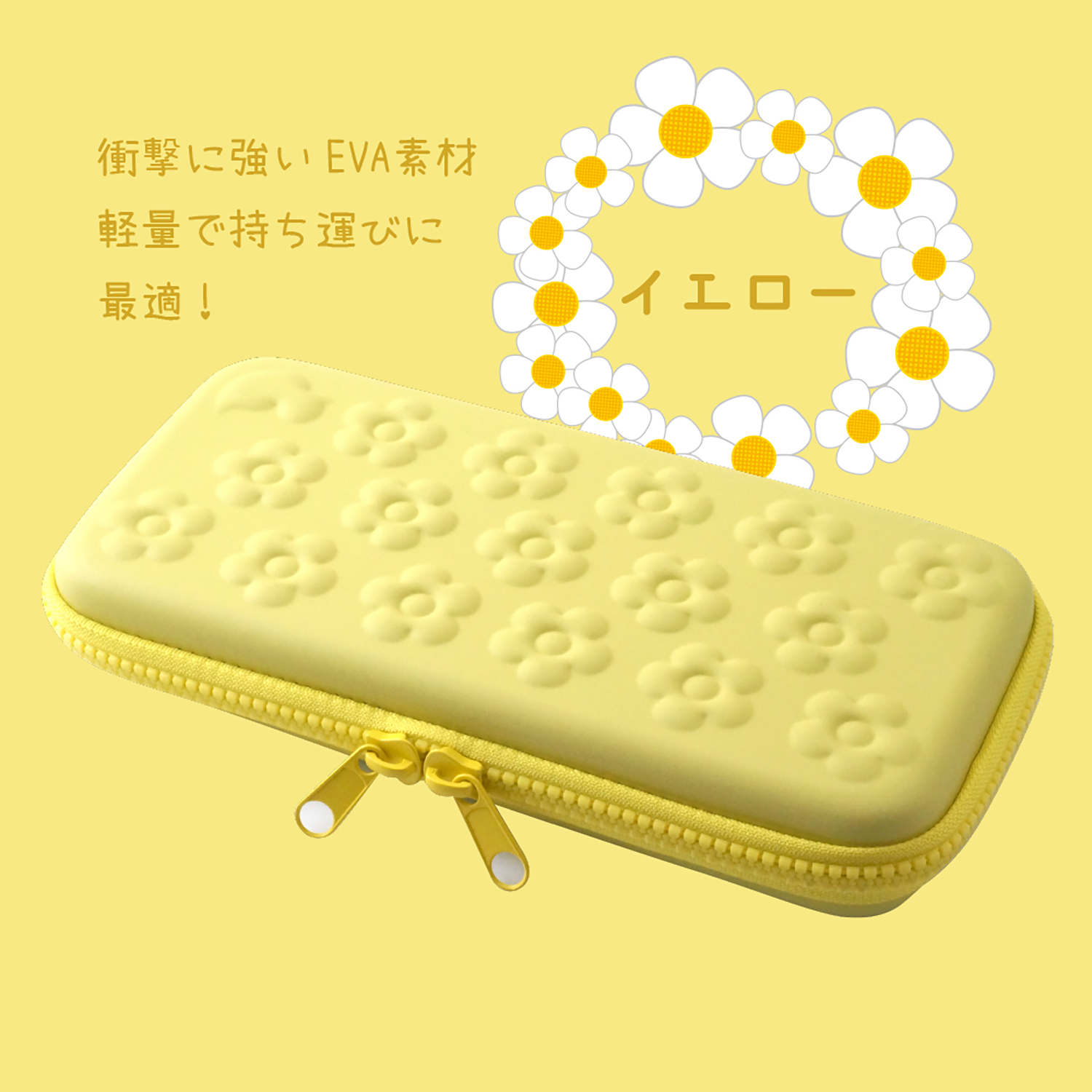 Switch用EVAポーチ エンボスフラワーシリーズイエロー