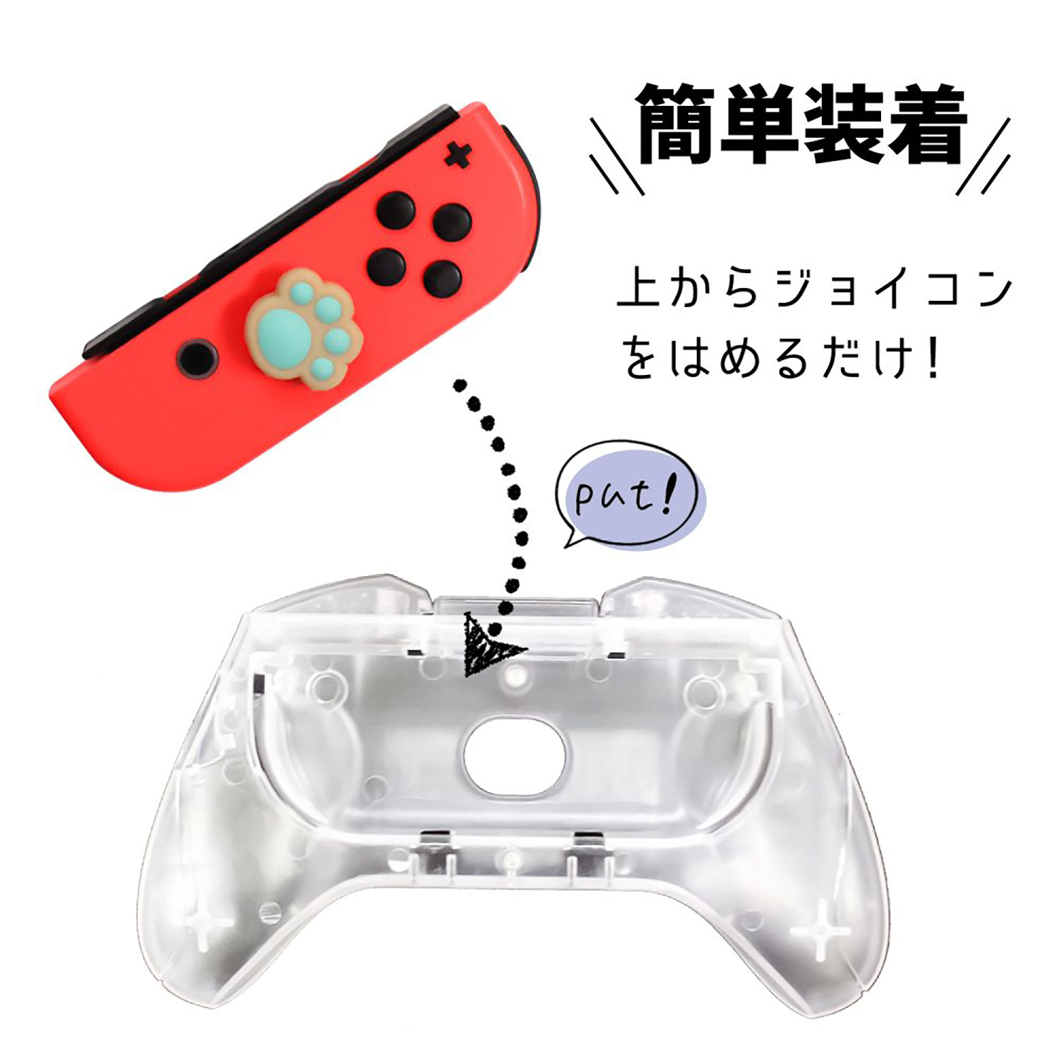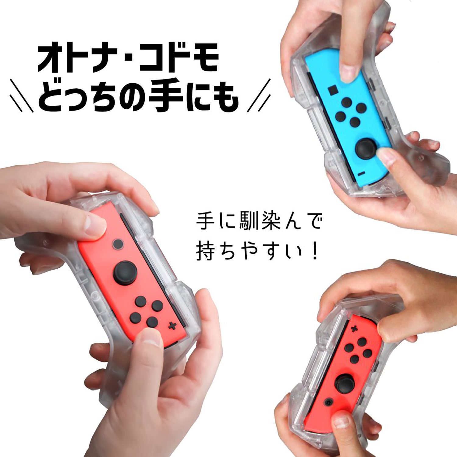 全体が透明グリップで出来ているため、どんな色のジョイコンにも合います。