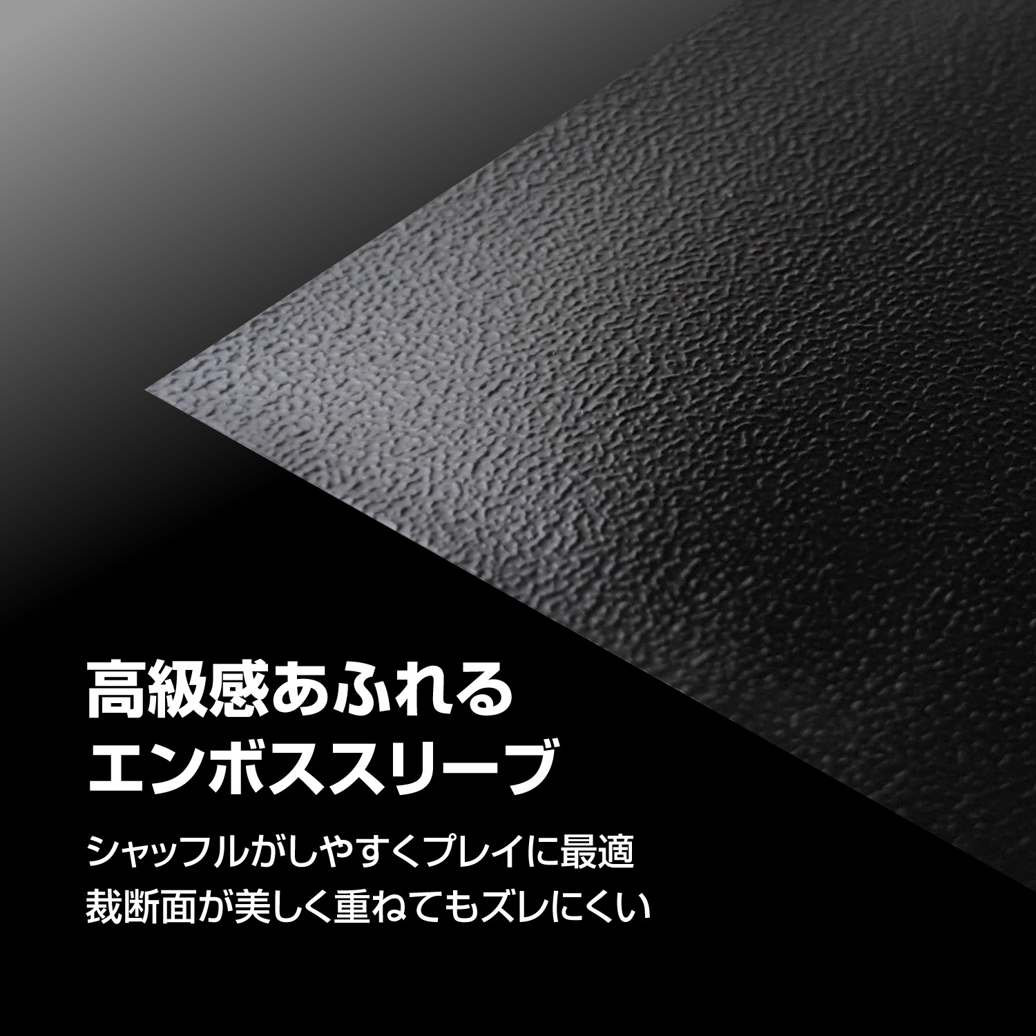 保管にもプレイにも最適なエンボススリーブ。シャッフルしやすさも魅力!