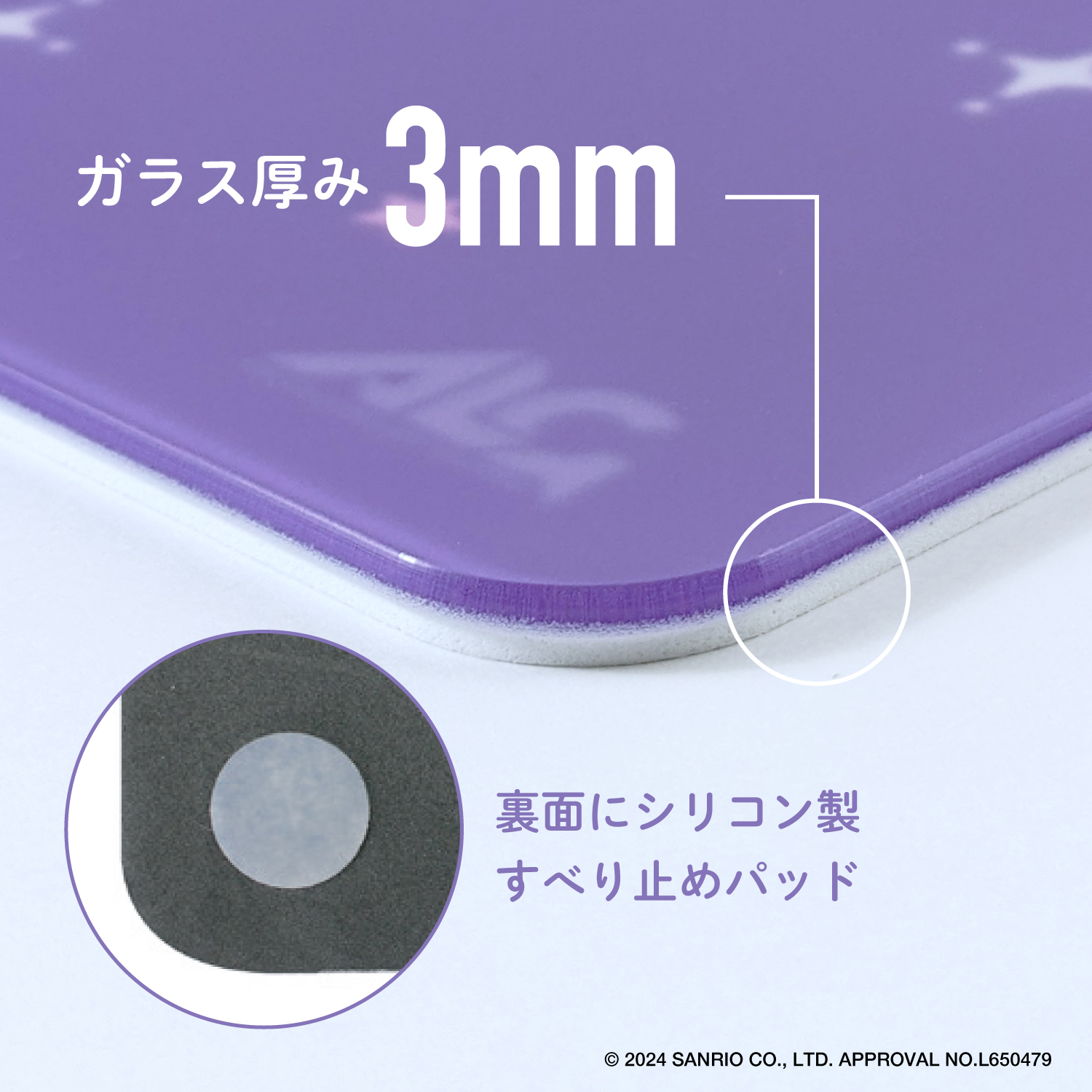強化ガラス製なので水分や汚れが付きにくく、お手入れ簡単!大好きなサンリオキャラクターズといつも一緒に♪
