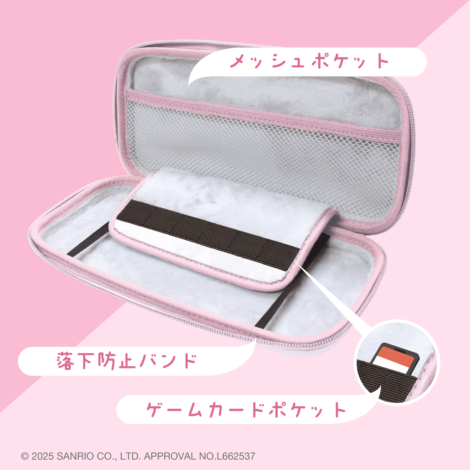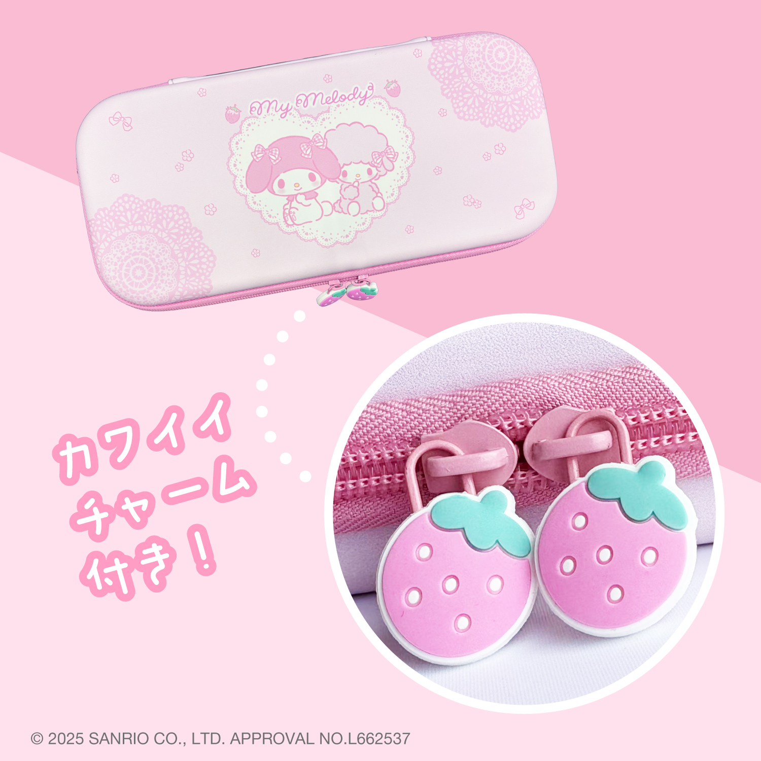 【サンリオキャラクターズのEVAポーチが登場!】サンリオキャラクターズ「マイメロディ」のゲーム機用EVAポーチが登場。内側には、柔らかく手触りの良いふわふわ素材を使用しております。ファスナーにはかわいいチャーム付き!