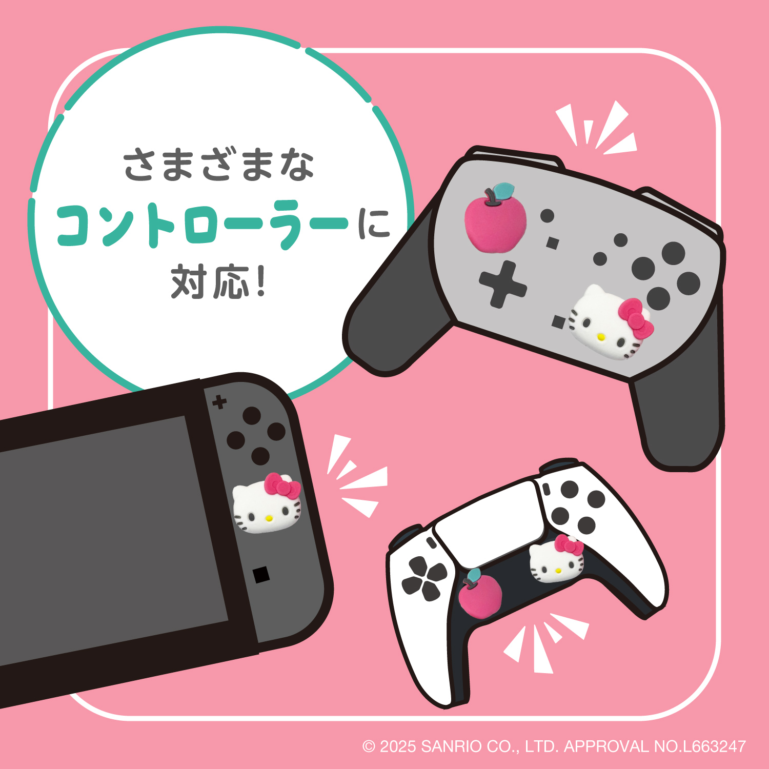 大人気のサンリオキャラクター「クロミ・マイメロディ・ハローキティ・ポチャッコ」がアナログスティックカバーになって登場!取り付けるだけで、いつものゲーム機がかわいく大変身!