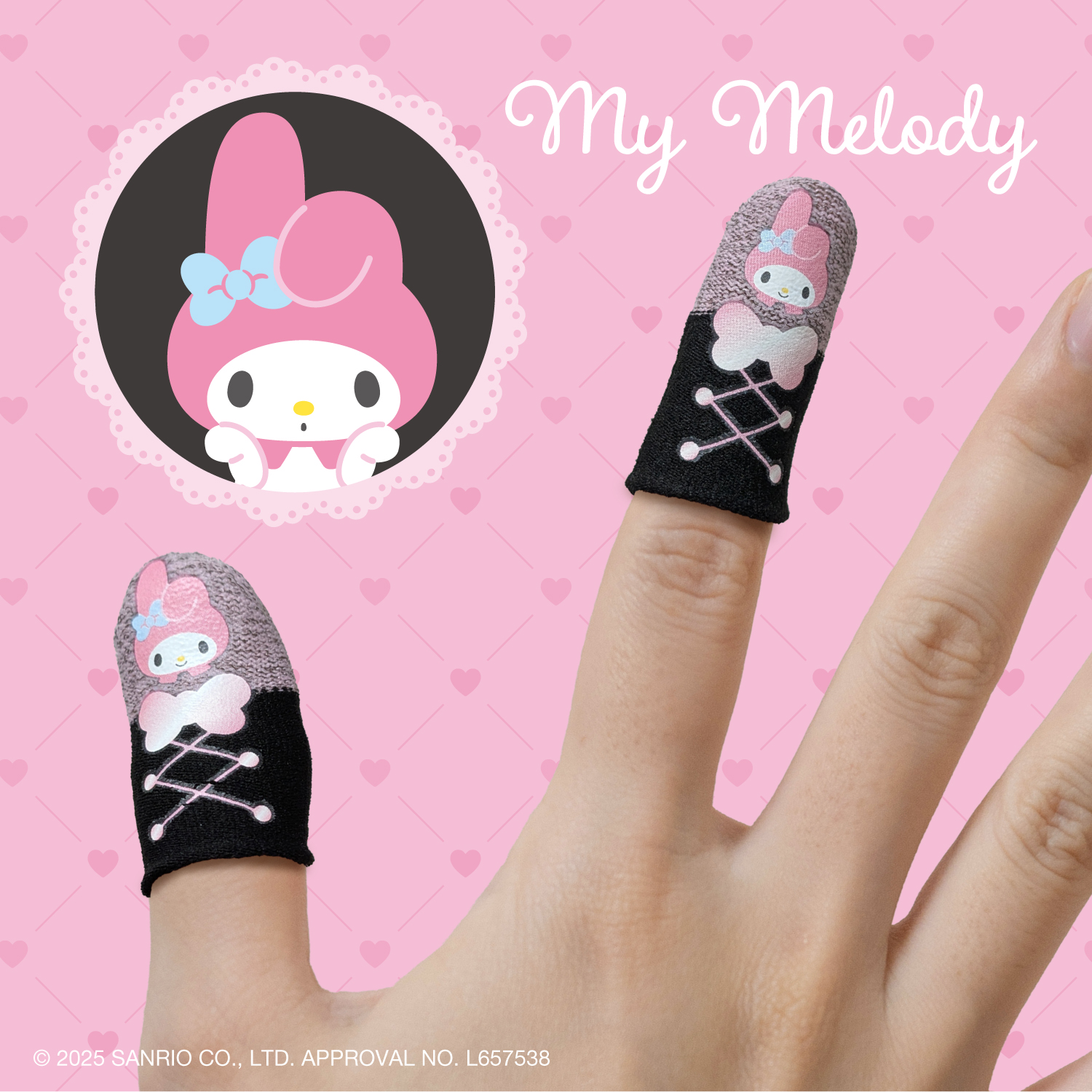 【サンリオキャラクターズのかわいいゲーム用指サック】大人気のサンリオキャラクターズ「マイメロディ」のゲーム用指サックが登場!リズムに合わせてスマホ画面をタップしたり、音楽に合わせて演奏したりする「音ゲー(リズムゲーム)」や「リズムアクションゲーム」などに最適です!