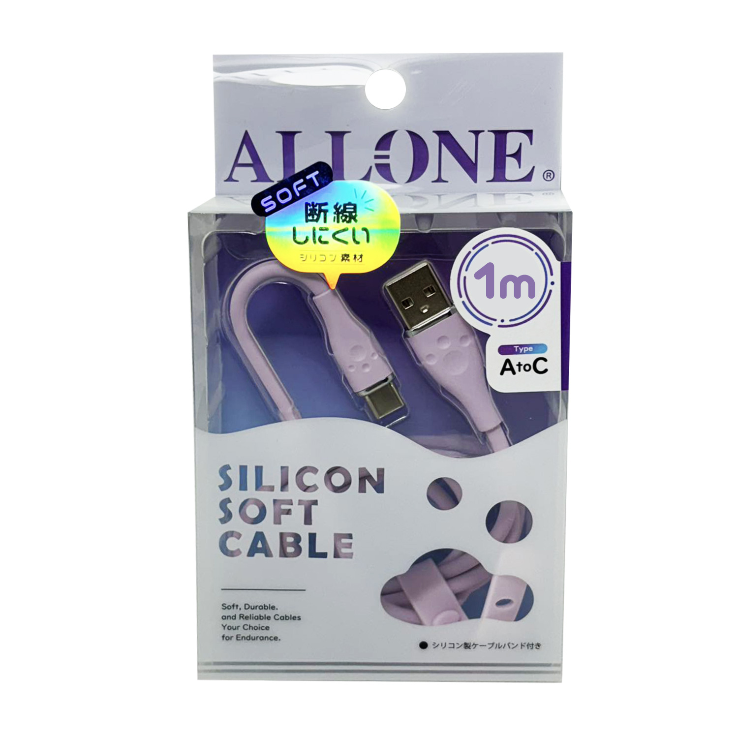 シリコンケーブルTypeAtoC1m パープル