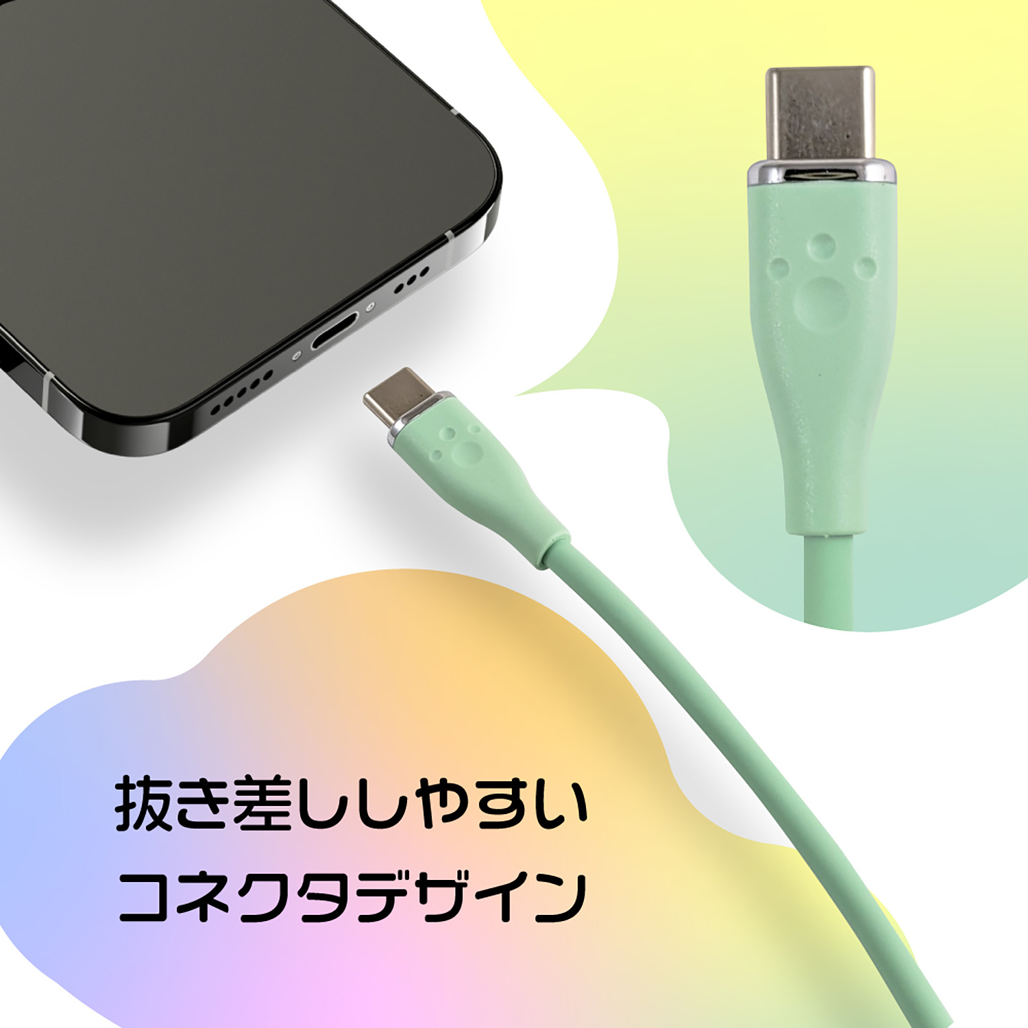 【肉球型の凹型付きコネクタで使いやすさ抜群】ケーブルコネクタ部分には肉球型の凹型が施されており、視覚的な楽しさを提供するだけでなく、ケーブルを取り外す際にしっかりと指がかかりやすい設計になっています。急いでいるときにもスムーズに取り外すことができ、ストレスフリーにお使いいただけます。