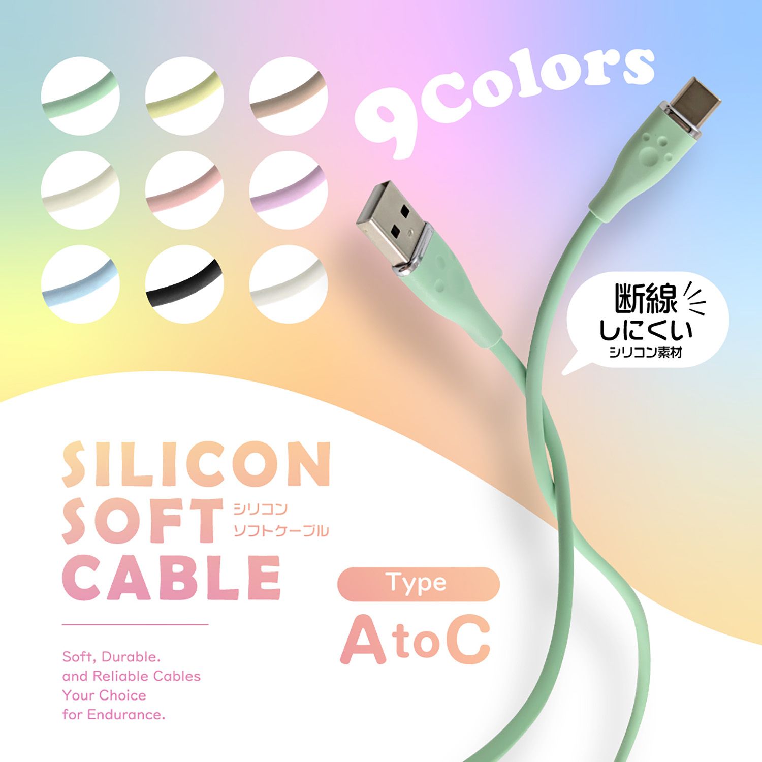 耐久性抜群!肉球がチャームポイントのシリコンケーブルです。