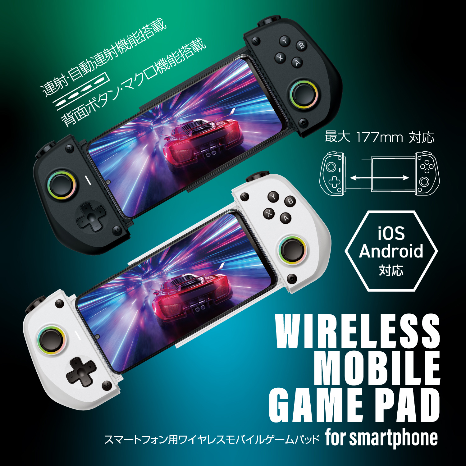 スマホゲームを本格的に楽しみたい方に最適な多機種対応スマホコントローラーが登場!ホワイト・ブラックの2色展開です。